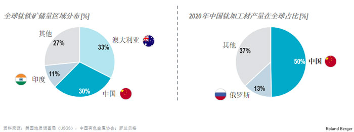 圖4. 中國鈦礦儲量及鈦材產(chǎn)量全球占比
