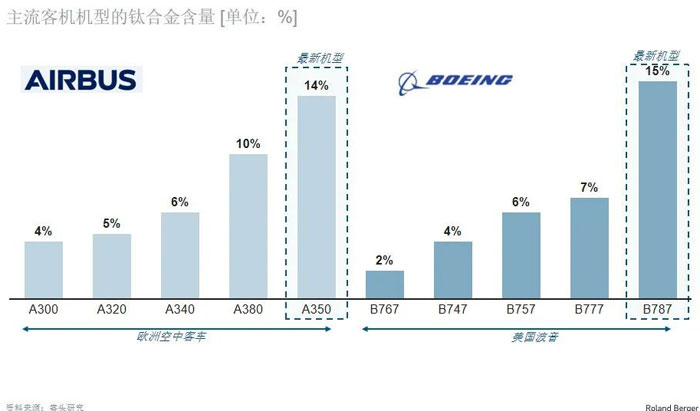 // 從波音和空客主流客機機型來看,先進機型鈦材含量逐步提高