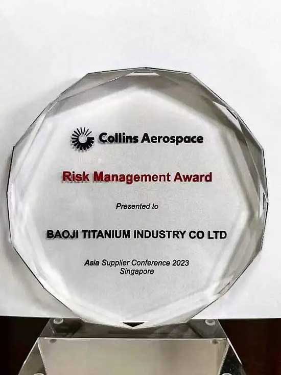 5月24至5月26日,美國柯林斯宇航公司在新加坡召開2023年亞太區供應商大會。寶鈦股份從一百多家供應商中脫穎而出,喜獲“風險管理獎”。寶鈦股份董事長雷讓岐帶隊參會并領獎。