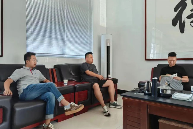 2018年,寶雞一個池塘邊的柳樹下有倆個年輕人常聚在那里釣魚,或蹲或坐在岸邊,魚沒有釣到一條,晴天釣了一縷浮光,雨天釣了一絲愁腸,疑惑掛臉的他們結伴而歸,拎著空桶返回時,心里的頭緒裝滿了魚簍——他倆就是寶雞市鼎信泰鈦業有限公司(以下簡稱鼎信泰鈦業)的“中國合伙人”何志剛、何佳興。圖為記者采訪何佳興(左)何志剛(中)。