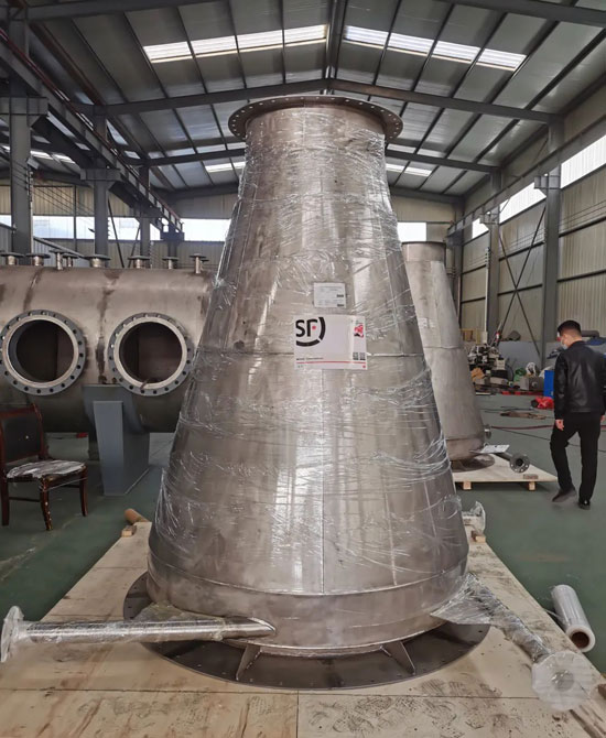 鼎信泰鈦業鈦鈀合金材料在市場上享有良好信譽,他們制作的鈦鈀廢氣風機、鈦鈀文丘里同樣在市場上享有良好聲譽。經過多年的努力,制作的廢氣風機已經廣泛應用國內產品所需大中型企業。何佳興說,鼎信泰研制廢氣風機選用特殊鈦合金及特殊工藝制造的葉輪,其特點是運轉平穩、效益高、壽命長、維護簡單。他說,廢氣風機是酸再生的動力“心臟”,正常而高效地運轉,直接關系到酸再生的正常生產;鼎信泰鈦業制作的TA9文丘里(見注釋)結構簡單合理,制造周期短,安裝方便,運行穩定,便于維護。何志剛還給記者科普了“文丘里”知識——文丘里是廢酸再生產工藝流程中不可缺少的設備,起到了預濃縮廢酸液及冷卻焙燒氣體的作用,可廣泛用于石油、化工、冶金、電力等行業大管徑流體的控制與計量。